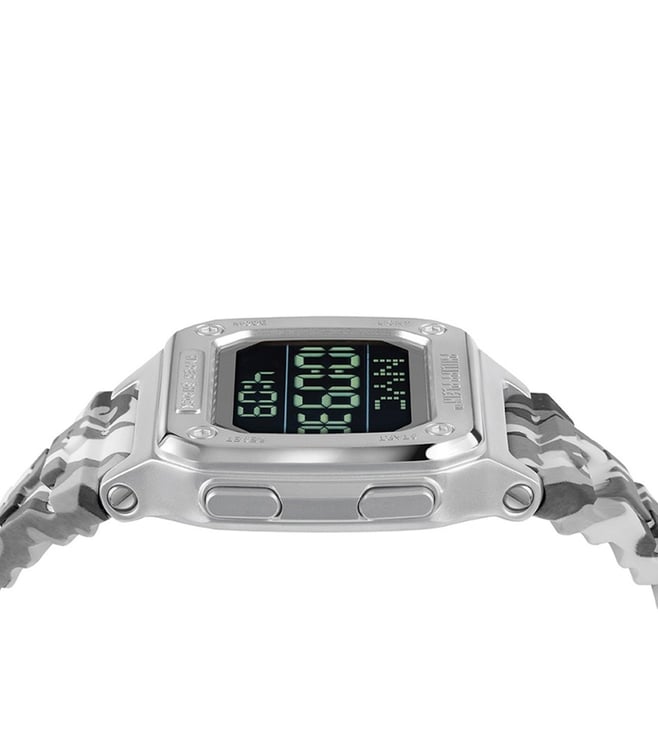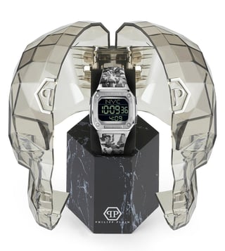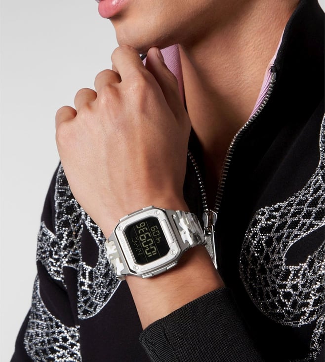 Add smartness to your personality by wearing this watch from Philipp Plein. Housed in a 44 mm case, the dial is shielded with mineral glass and runs on a digital movement. It is water resistant up to 50 m and is finished with a buckle to guarantee a snug fit on the wrist. This distinctive timepiece seamlessly combines contemporary design with modern precision. With reliable timekeeping and digital functionality, this watch is the ideal accessory for those who appreciate both fashion and modern technology.