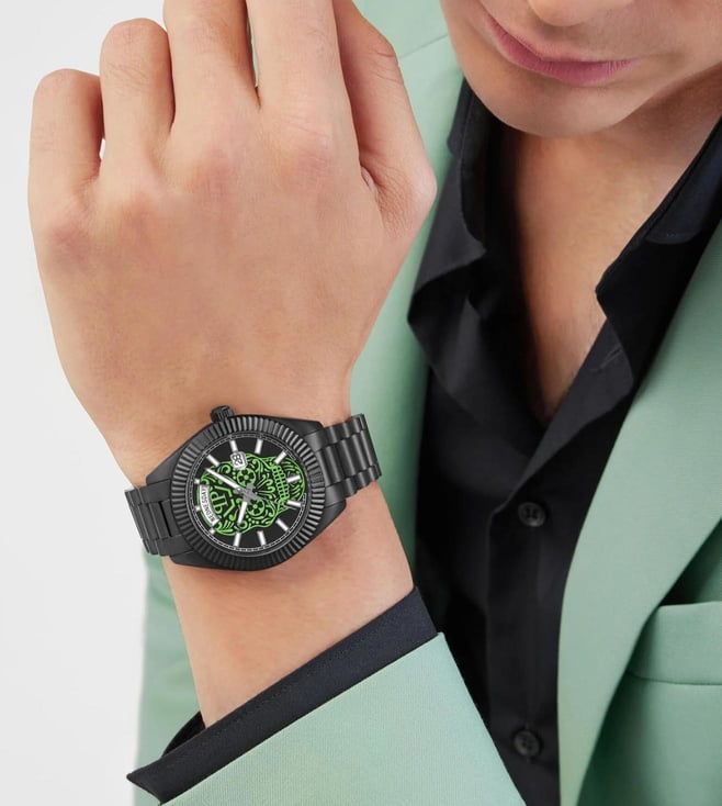 Introducing the Philipp Plein Men 42 mm Size Green Dial Analog Watch - expertly crafted with precision and style. This timeless piece features a sleek green dial and a 42 mm size, making it a versatile accessory for any occasion. Elevate your look with this luxurious and reliable watch.