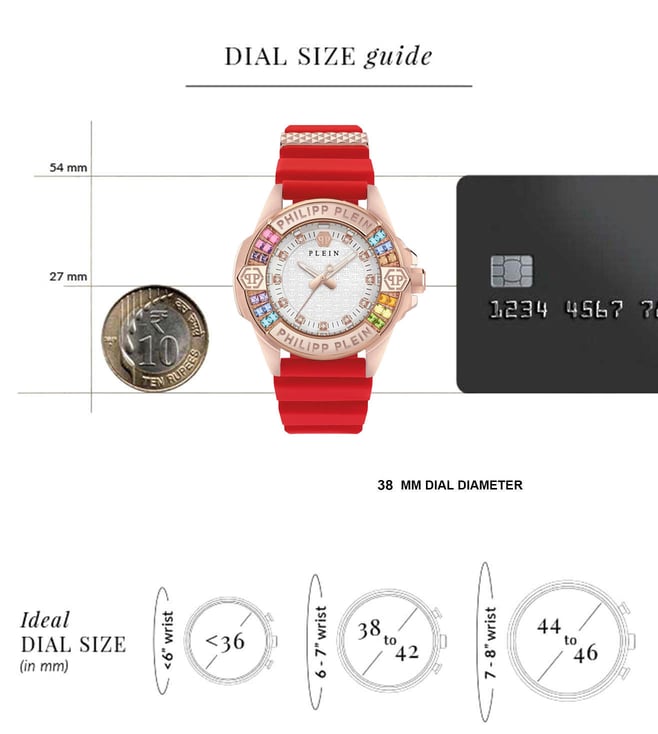 Experience timeless craftsmanship with the PHILIPP PLEIN Watch for Women Analog, a true classic among water resistant watches for man Analog. Designed with a bold 38mm Silver dial and a stylish Red Silicone this Womens watches model combines modern edge with vintage charm. Built for everyday wear, its Stainless Steel case ensures durability, while the 50 m water resistance makes it suitable for daily splashes and unexpected weather. The Analog watch for man runs on reliable Quartz movement, offering precise timekeeping that suits both casual outings and formal occasions.