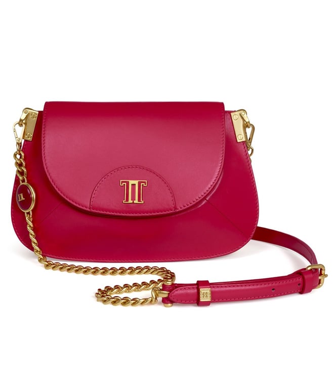 Pink Champs-elysees Textured Medium Leather Cross Body Bag
