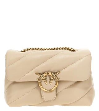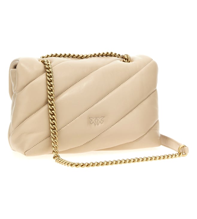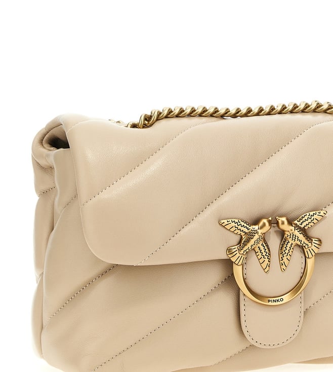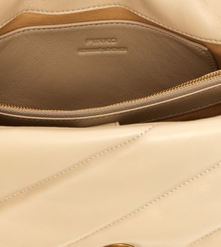 Expand the collection of your accessories in a trendy way with this bag from Pinko. Classic love bag puff maxi quilt quilted leather crossbody bag with flap closure, front metal logo, and chain shoulder strap.