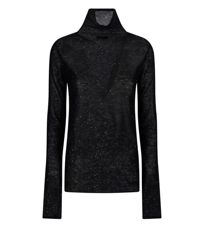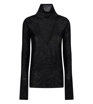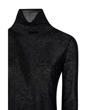 Elevate your style with this exquisite black sweater, featuring an intricate embellished pattern that shimmers with elegance. Crafted from a luxurious blend of 98% wool and 2% polyamide, it offers warmth and comfort. The long sleeves and high neck add a touch of sophistication, perfect for any occasion. Products purchased from Darveys are supported exclusively by the warranty/exchange policies of Darveys and its partner boutiques. Brand owners and their channel partners are not responsible for exchange/warranty services for items purchased through Darveys.