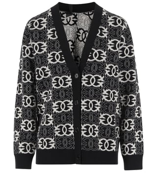 Embrace elegance with this black graphic-patterned cardigan, featuring long sleeves and a sophisticated V-neck. Crafted from a luxurious blend of 72% viscose and 28% polyester, it offers a soft, breathable feel. Perfect for any occasion, this versatile piece adds a touch of chic to your wardrobe. Products purchased from Darveys are supported exclusively by the warranty/exchange policies of Darveys and its partner boutiques. Brand owners and their channel partners are not responsible for exchange/warranty services for items purchased through Darveys.