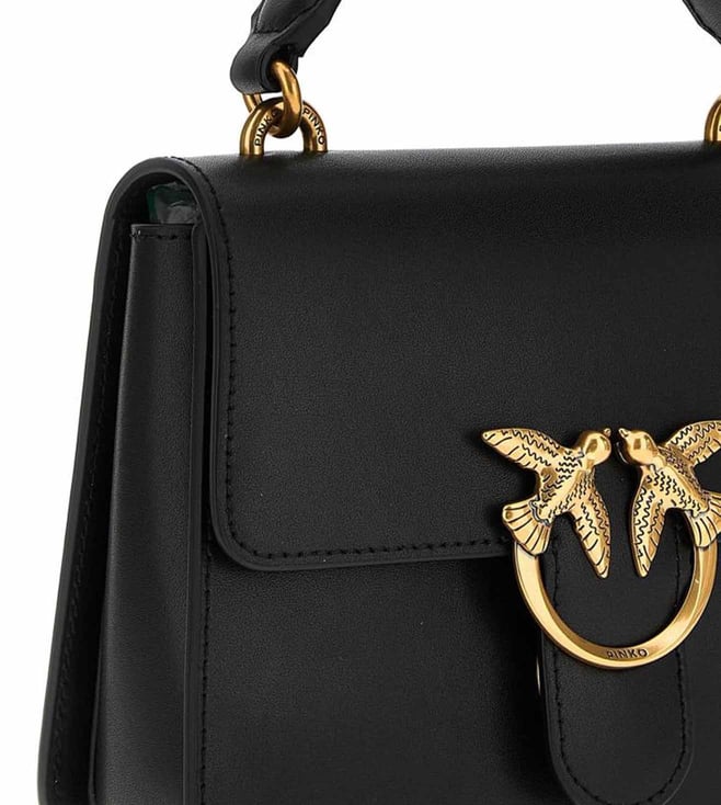 Expand the collection of your accessories in a trendy way with this bag from Pinko. Love one leather handbag with gold hardware, a flap closure with logo. Removable shoulder strap.