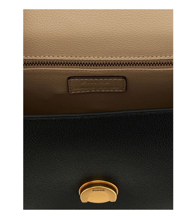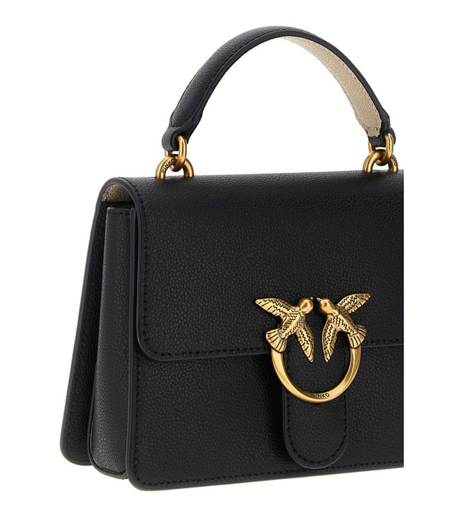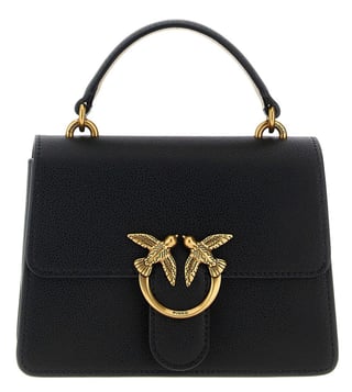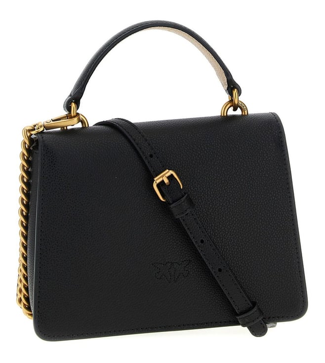 Black Mini Love Small Handbag, interlocking flap closure, 1 Compartment, metal logo, Textured, top handle with removable adjustable chain-link crossbody strap.100% Leather With its timeless design and practical features, this bag is a must-have accessory for the modern woman on-the-go.