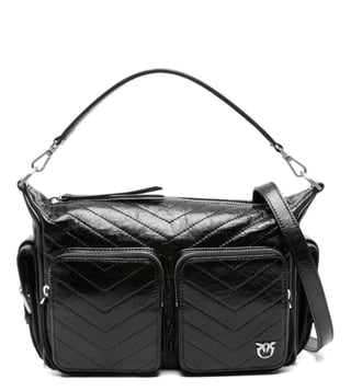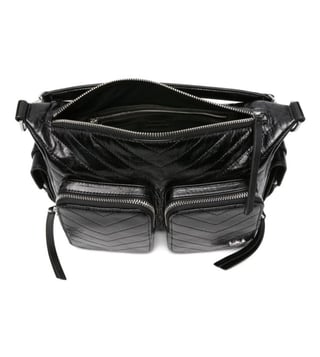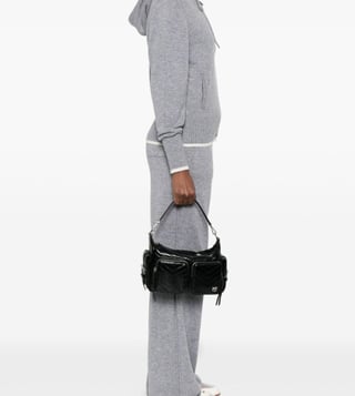 Black Multipocket Satchel, Zip Closure, 1 Compartment, Inside And Outside Zip Pockets, Front Logo, Textured, Removable Top Handle With Removable Shoulder Strap. With its timeless design and practical features, this bag is a must-have accessory for the modern woman on-the-go.