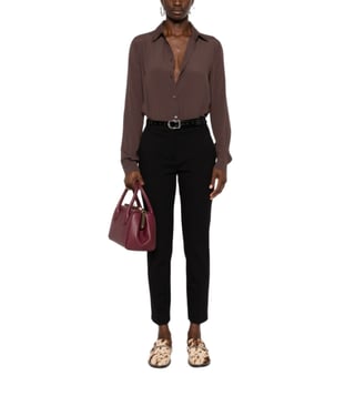 Elevate your wardrobe with the Pinko Black Slim Fit Trousers. Designed with zip fly, hook & eye closure, belt loops, pockets, these trousers combine comfort and sophistication for everyday wear. Products purchased from Darveys are supported exclusively by the warranty/exchange policies of Darveys and its partner boutiques. Brand owners and their channel partners are not responsible for exchange/warranty services for items purchased through Darveys.