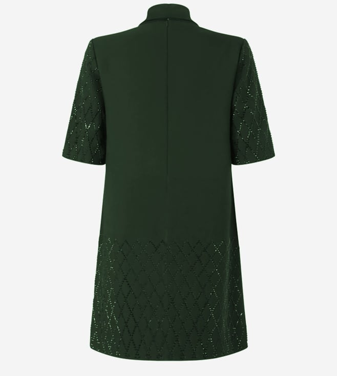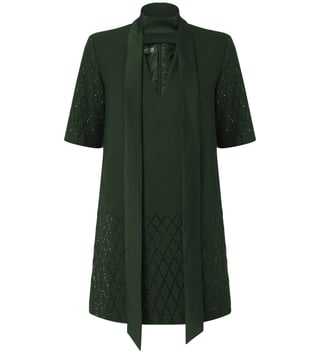 The Pinko Green Geometric Dress is a vibrant fusion of modern art and fashion. Its bold geometric patterns dance across a lush green canvas, creating a mesmerizing visual symphony. The sleek silhouette flatters every curve, while the playful design exudes confidence and contemporary elegance. Perfect for any occasion. Products purchased from Darveys are supported exclusively by the warranty/exchange policies of Darveys and its partner boutiques. Brand owners and their channel partners are not responsible for exchange/warranty services for items purchased through Darveys.