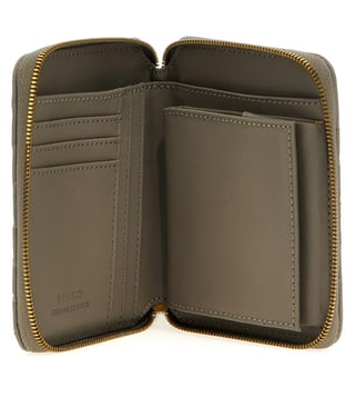 Quilted leather taylor wallet, zip closure, front metal logo. w 12.5 x h 10 x d 2.5 cm
