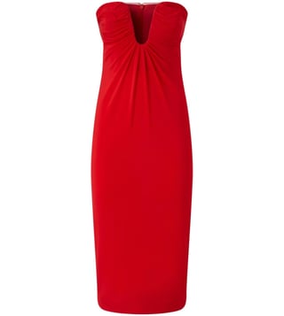 Unleash your inner diva with this stunning red dress, a masterpiece of elegance and allure. Crafted from a luxurious blend of 94% viscose and 6% elastane, it offers a perfect balance of comfort and stretch. The solid red hue exudes confidence, while the sleeveless, strapless design highlights your shoulders and neckline with grace. A seamless closure ensures a sleek silhouette, making it an ideal choice for any occasion where you wish to captivate and enchant.