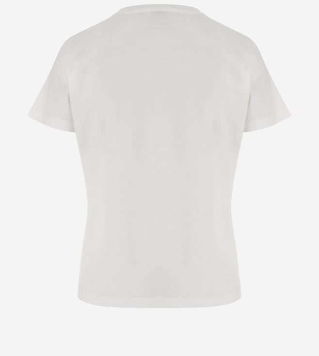 Elevate your wardrobe with this chic white T-shirt, featuring an exquisite embellished pattern that adds a touch of sparkle to your everyday look. Crafted from 100% cotton, it offers supreme comfort and breathability. The short sleeves and round neck design make it a versatile staple for any occasion. Products purchased from Darveys are supported exclusively by the warranty/exchange policies of Darveys and its partner boutiques. Brand owners and their channel partners are not responsible for exchange/warranty services for items purchased through Darveys.