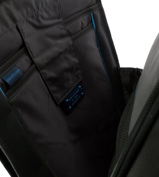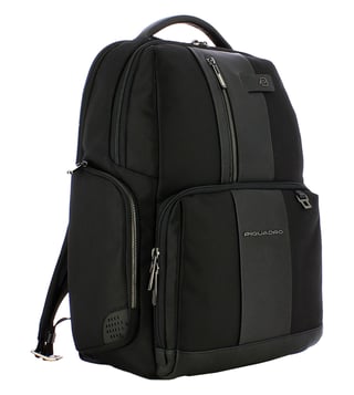 The PIQUADRO Brief line carries a wide range of bags and briefcases for business and leisure, which are characterized by convenient storage pockets and rich internal organization. Introducing Piquadro's Fast-Check Brief 2 15.6 PC Backpack, a sustainable and stylish business essential. Crafted from recycled synthetic fabric with genuine leather accents, it offers convenient organization with zippered side pockets, a front pocket, and a breast pocket. Comfort is prioritized with adjustable padded shoulder straps, an ergonomic backrest, and a hidden pocket.