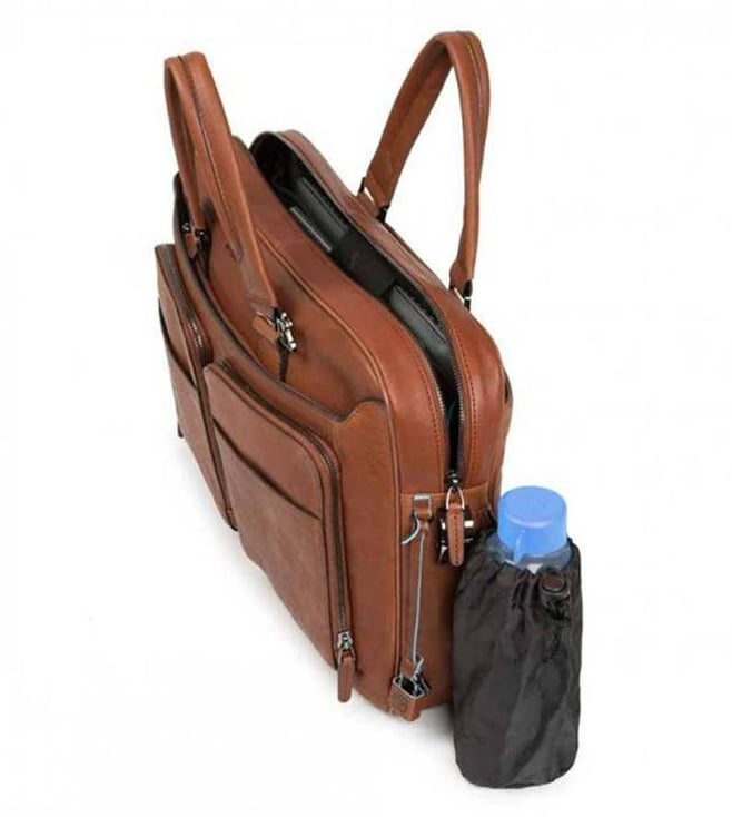 Piquadro Brown Black Square Tobacco Medium Leather Laptop Briefcase
