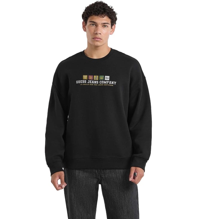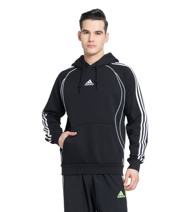 Men's Black Polycotton Embroidered Regular Fit Hooded Neck Full Sleeve Sweatshirt