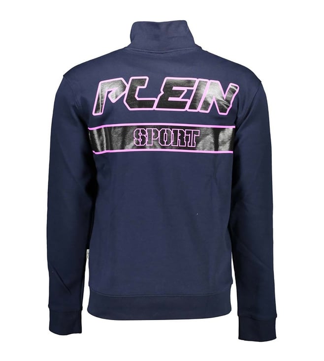Amp up your wardrobe with this blue logo print jacket from Plein Sport, crafted in cotton featuring long sleeves,zip closure, pockets.