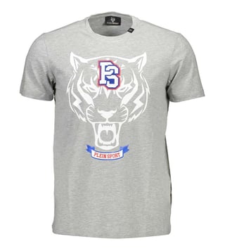 Amp up your wardrobe with this grey tiger logo print t-shirt from Plein Sport crafted in cotton featuring short sleeves, crewneck, pullover style. Products purchased from Darveys are supported exclusively by the warranty/exchange policies of Darveys and its partner boutiques. Brand owners and their channel partners are not responsible for exchange/warranty services for items purchased through Darveys.