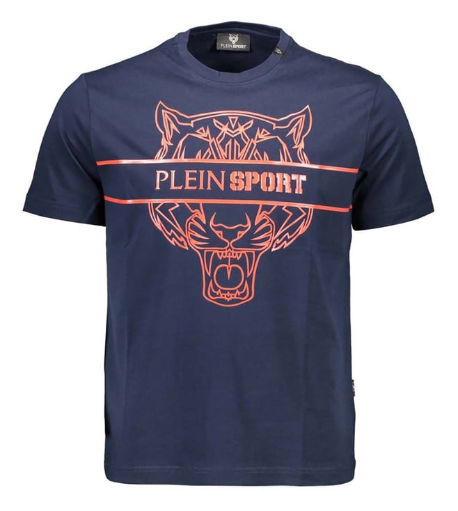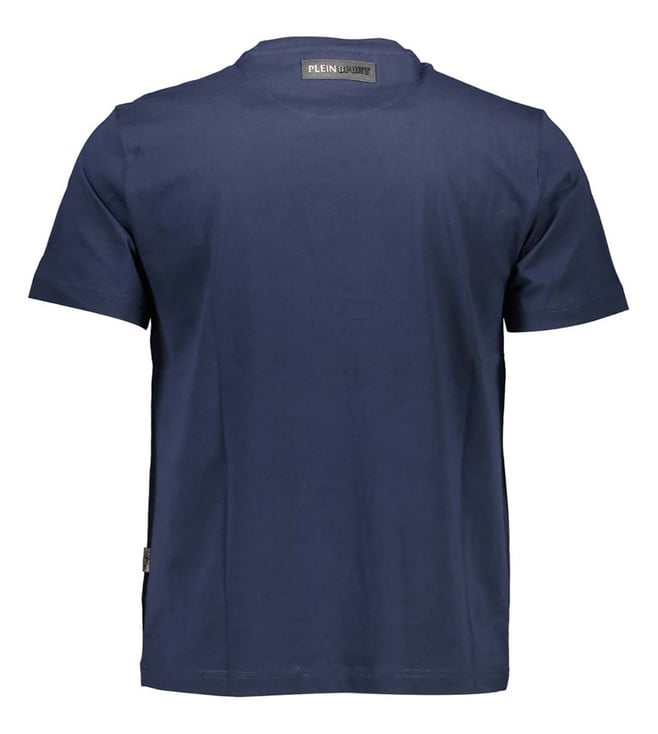 Plein Sport Navy Blue Cotton Printed Regular Fit T-Shirt