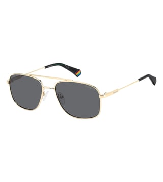 Exhibiting a refined finish, this pair of Sunglasses from Polaroid will lend you an impeccable look. Designed from Metal, the Gold-hued frame assures utmost comfort with its lightweight make. The Grey lenses are made with care from UV400 Protect that keeps your eyes protected without compromising on the style. The Full Rim design adds to its overall appeal.