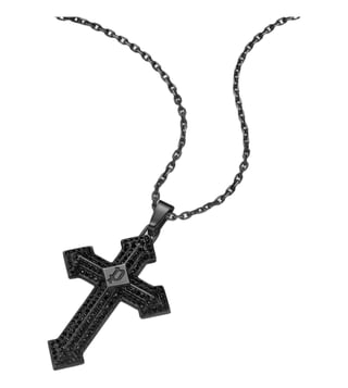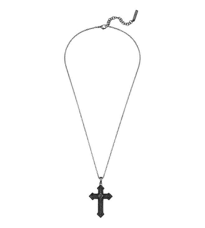 Police Black Stoneset Cross with P Logo Chain Necklace