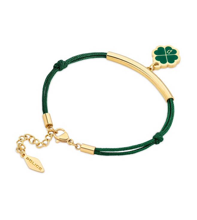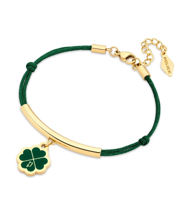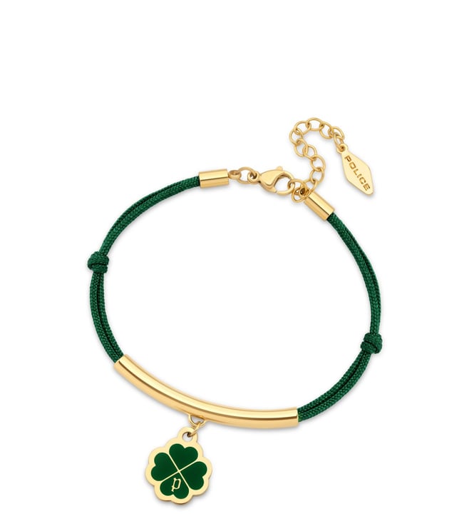 Green & Gold Flora Clover Charm Green Enamel & Cord Bracelet