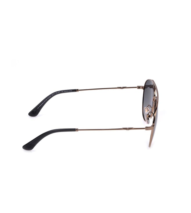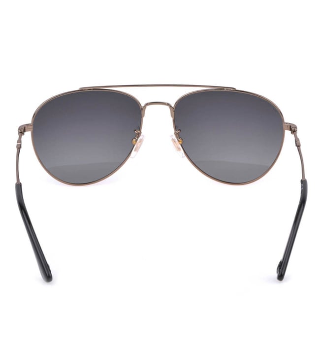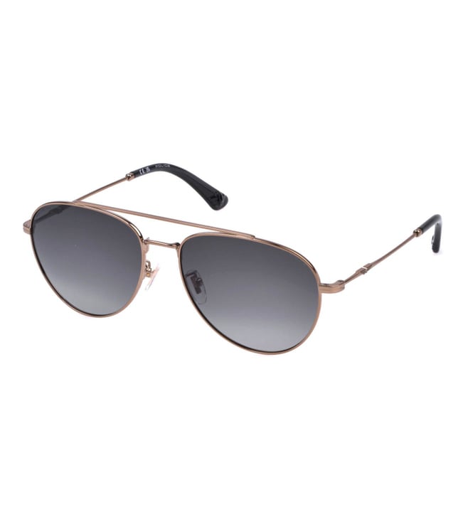 Amaze everyone by sporting this pair of Sunglasses from Police. Fashioned from Metal, the lightweight frame vaunts a Gold hue. The Grey lenses are crafted with care from Polycarbonate that not only lends you a smart look but also assures complete protection of your eyes. The Full Rim design further magnifies its overall charm.