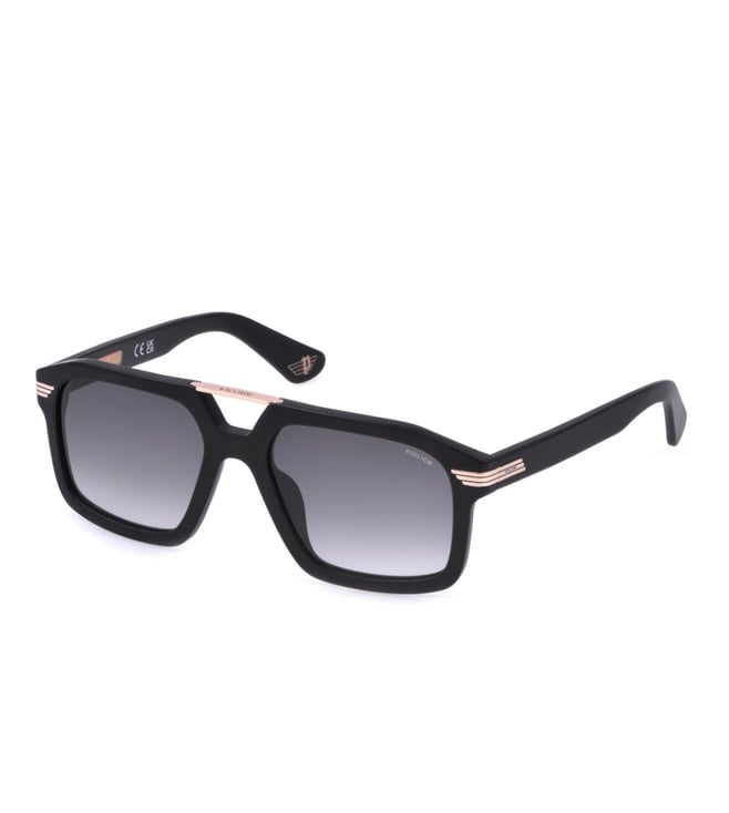 Stand out in the crowd by donning this pair of Sunglasses from Police. Designed from Acetate, the Black-hued frame assures utmost comfort with its lightweight make. The Grey lenses are made with care from Polycarbonate that keeps your eyes protected without compromising on the style. The Full Rim design adds to its overall appeal.
