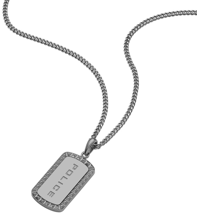 A sleek and contemporary addition to any wardrobe, the Police necklace is crafted from durable and luxury metals. Its modern and masculine design adds an edgy touch to any outfit, with an adjustable chain for a comfortable fit. Perfect for any occasion, it is an ideal statement piece or gift for fashion-conscious individual.