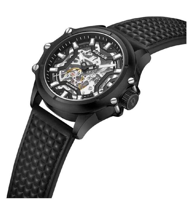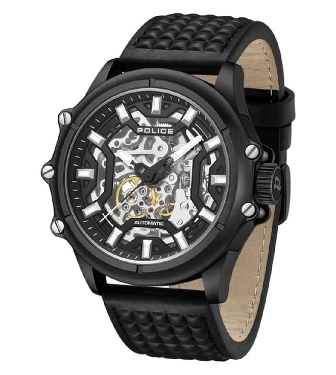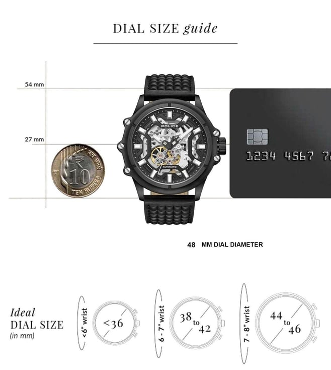 Introducing the Police KL Rahul Automatic Mens watch, a sleek and stylish timepiece designed for the modern man. With a bold 48mm case, this watch exudes confidence and sophistication. The automatic movement ensures precise timekeeping, while the durable stainless steel construction provides long lasting quality. Stand out from the crowd with this eye catching timepiece that effortlessly combines form and function. Elevate your style with the Police KL Rahul watch.