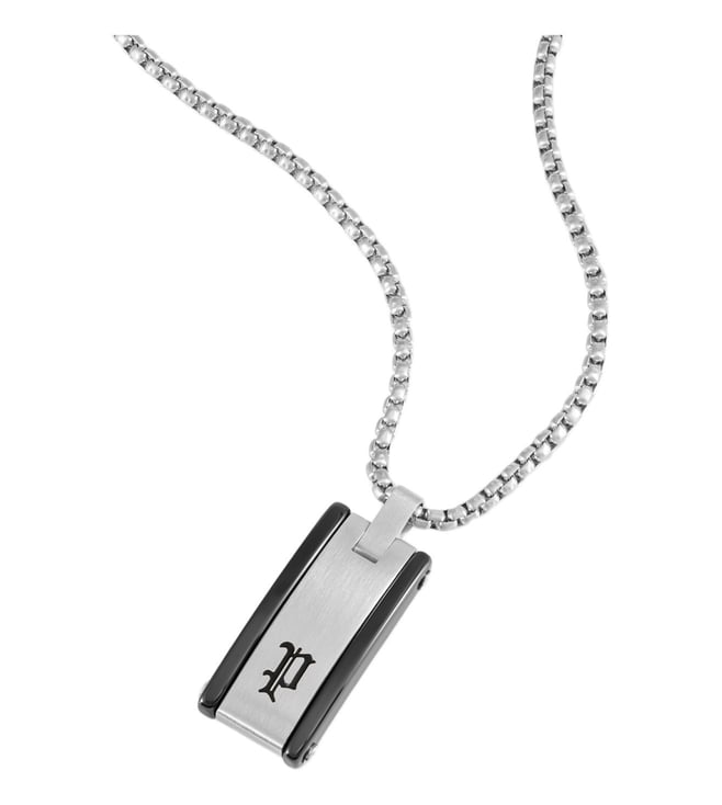 Police Silver Ceramica I P Logo Dog Chain Necklace