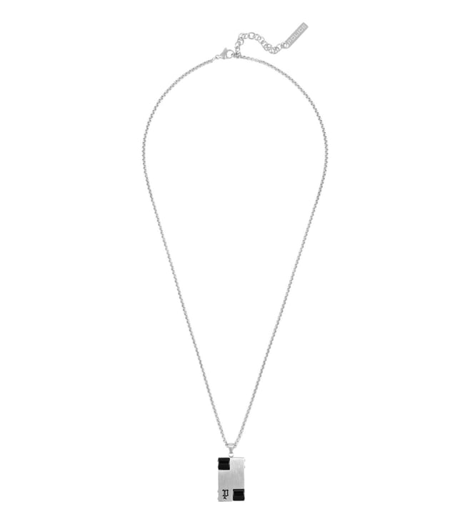 Police Silver Ceramica II Cube Tag Chain Necklace