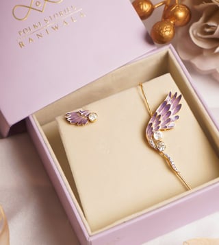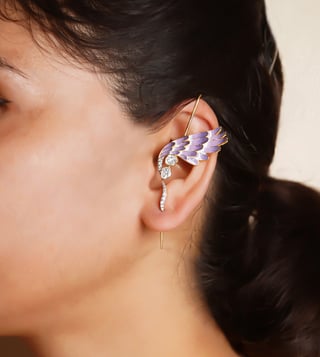 Handcrafted in 14k gold, this asymmetrical Polki duo, a winged stud and dramatic earcuff blends traditional elegance with a modern, dreamlike charm. Styling Tip Keep your hair swept back or styled in a high updo to fully highlight the cuff's graceful length and the set's unique, asymmetrical silhouette.