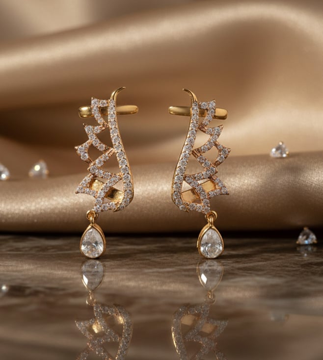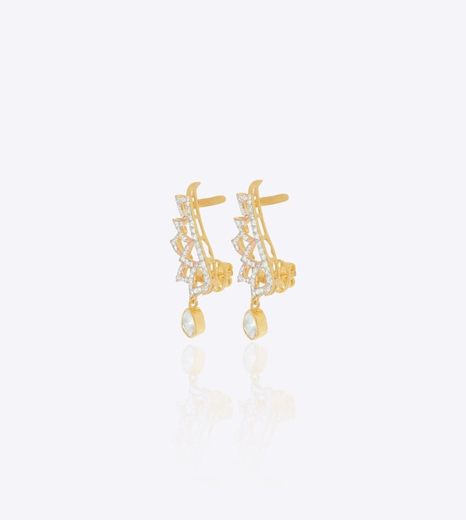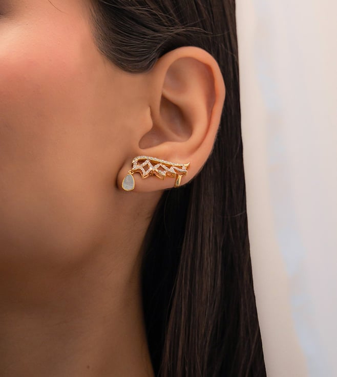 Daring yet refined, the Midnight Spikes Earcuffs showcase 14k gold with a striking zig zag silhouette. Adorned with Polki and diamonds, each curve glistens with edgy brilliance, finished with a delicate teardrop sparkle. Styling Tip Best paired with sleek buns or high ponytails to let the spiky silhouette shine as a statement piece.