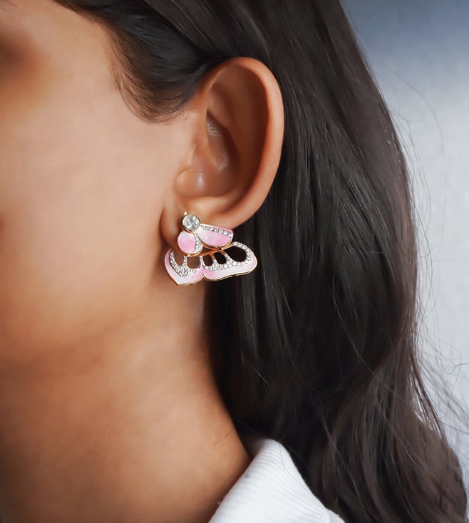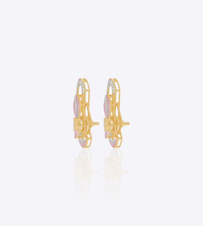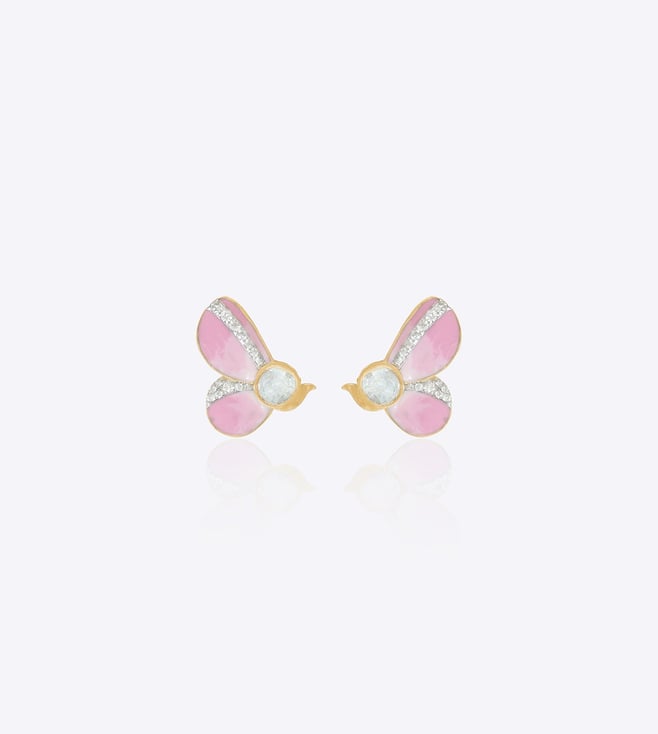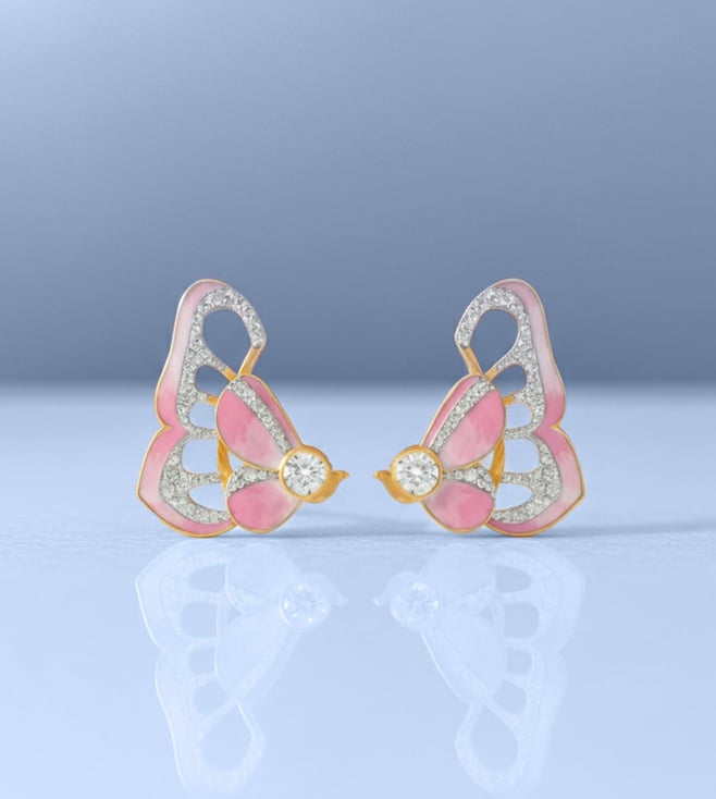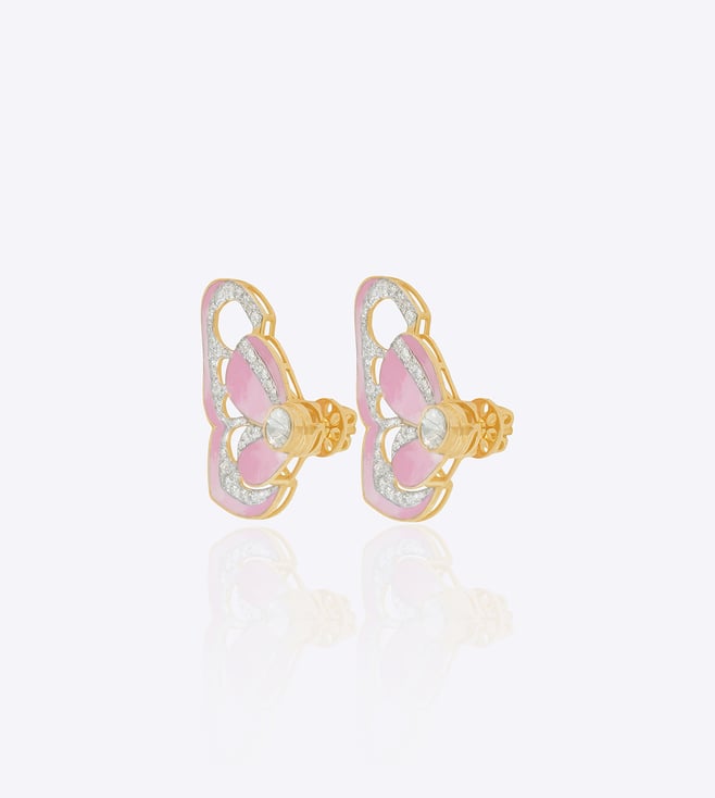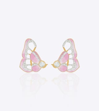 Inspired by fluttering wings, the Papillon Jacket Earrings in 14k gold feature Polki, diamonds, and intricate enamel accents. These jacket design are bold and playful statement earrings. Styling Tip For a chic daytime look, wear just the studs. Add the enamelled butterfly jacket to transform them into a vibrant evening statement.