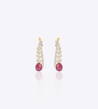 The Pink Flame Earcuffs in 14k gold feature polki, diamonds, and a radiant pink gemstone. Designed to climb the ear in a flame-like silhouette, they exude bold elegance. Styling Tip Style with swept-back hair and skip a necklace for effortless runway chic.