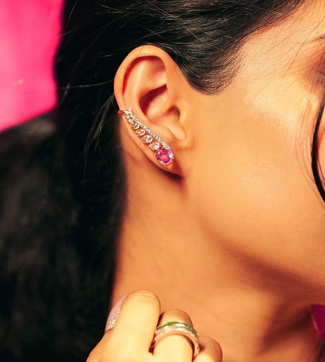 Polki¿Stories¿By Raniwala 14K Gold Pink Flame Earcuffs