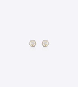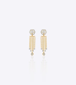 This elegant earring jacket is expertly crafted in 14k yellow gold and features a striking geometric stud framed in pave diamonds and set with a round Polki diamond. These ear jackets offer two looks¿elegant studs by day or full drops by night. Styling Tip To style these chain fringe Polki diamond ear jackets, pair them with an off-shoulder or deep-neck ensemble to let the cascading chains take center stage.