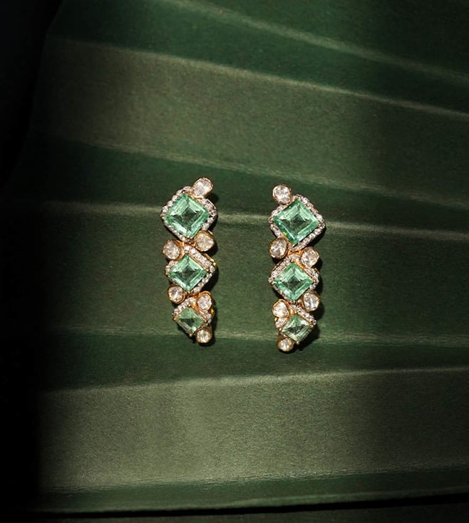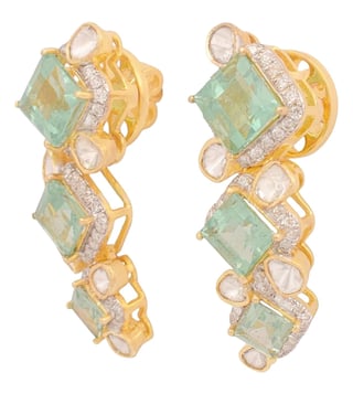 Polki Stories by Raniwala 14K Green Verdant Cascade Stud Earrings