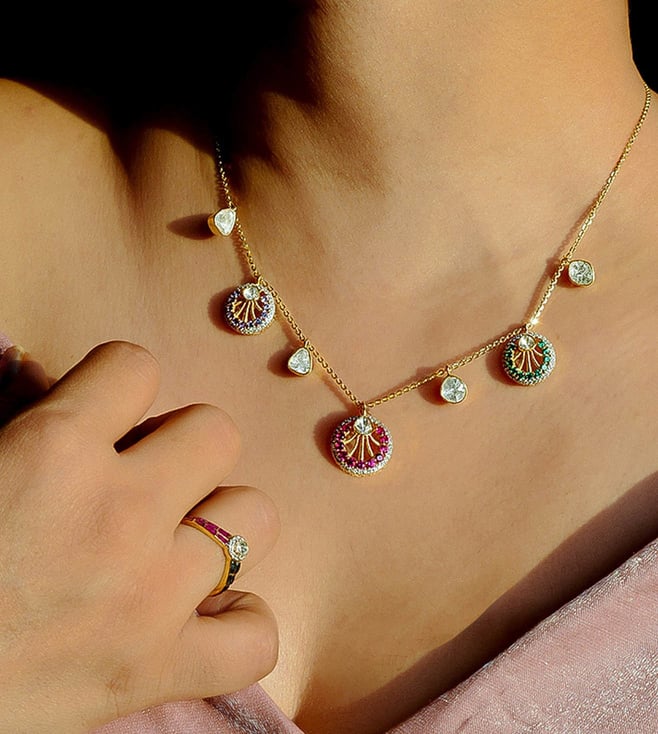Polki Stories by Raniwala 14K Multicolor Aurora Floral Princess Necklaces