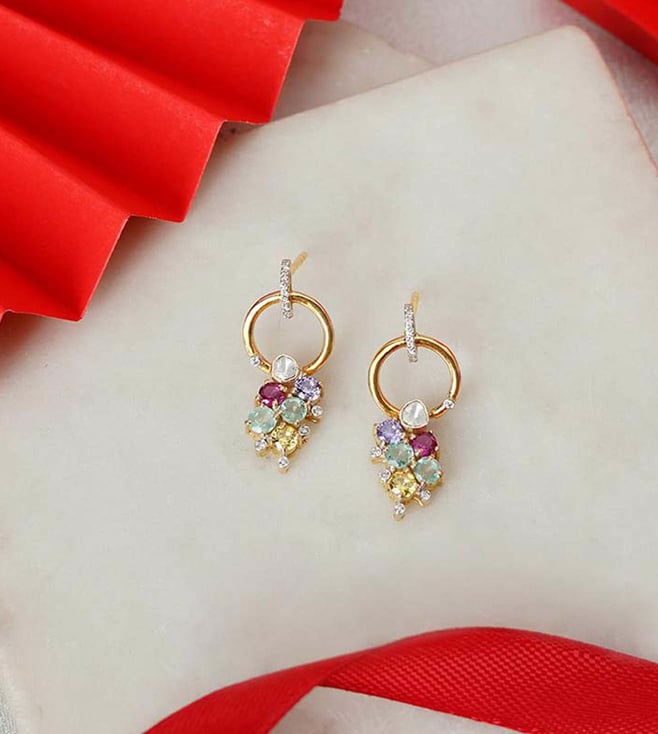 Polki Stories by Raniwala 14K Multicolor Gem Pop Dangler Earrings