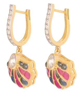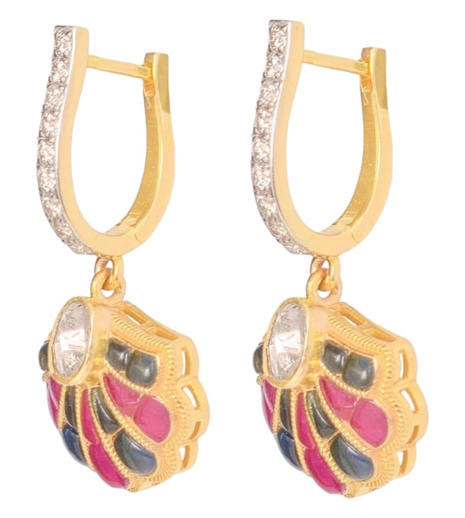 Polki Stories by Raniwala 14K Multicolor Sea Shell Dangler Earrings