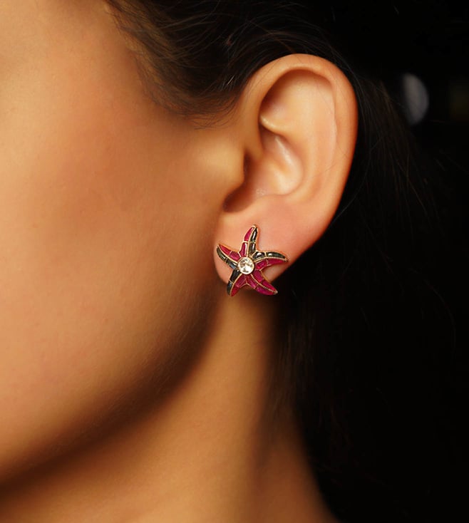 Polki Stories by Raniwala 14K Multicolor Stellar starfish Stud Earrings