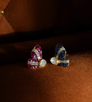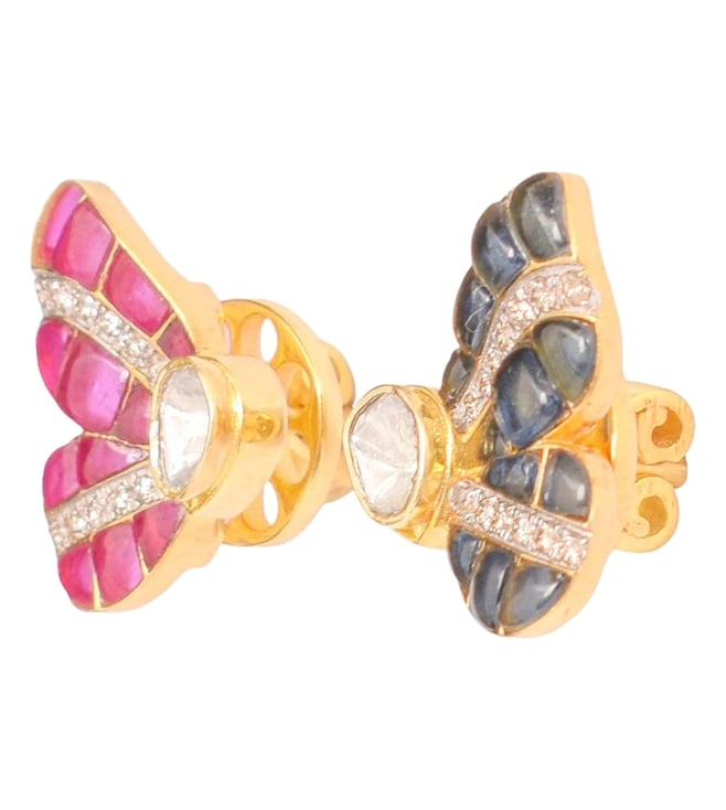 Polki Stories by Raniwala 14K Multicolor Winged Grace Stud Earrings
