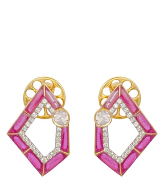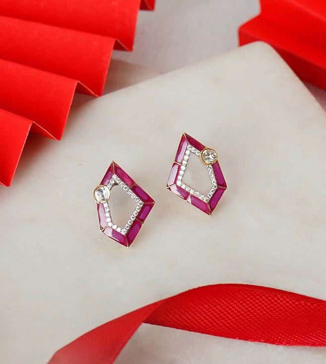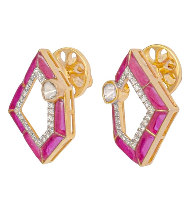 Polki Stories by Raniwala 14K Ruby Fuchsia Facet Stud Earrings
