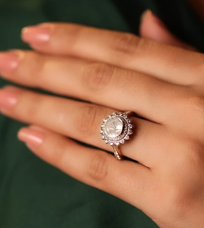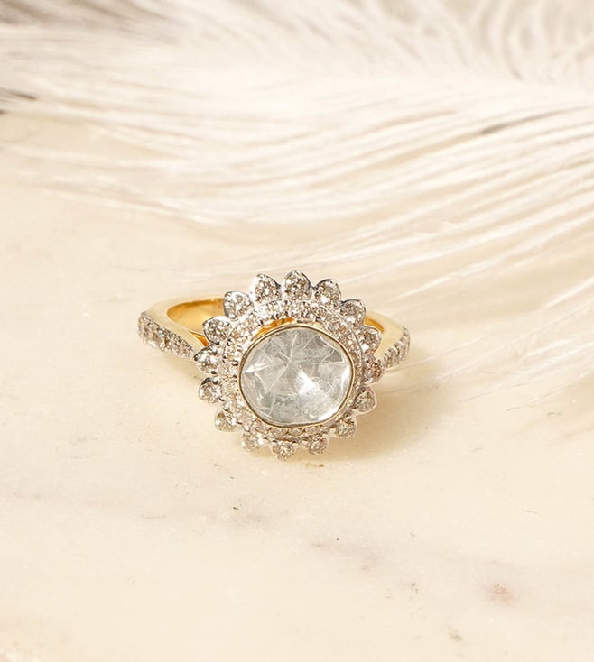 Polki Stories by Raniwala 14K White Accent Classic Polki Diamond Princess Ring