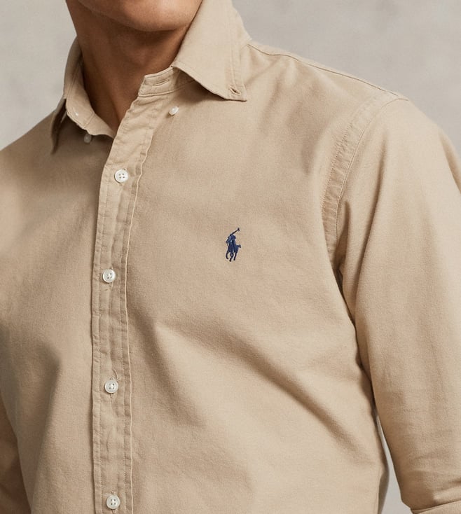 Polo Ralph Lauren Beige Garment-dyed Custom Fit Oxford Shirt