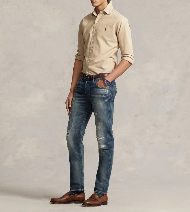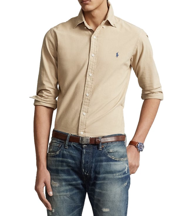 Elevate your casual wardrobe with the polo ralph lauren beige garment-dyed custom fit oxford shirt. Crafted from premium quality materials, this shirt offers a perfect blend of comfort and style. The garment-dyed finish gives it a unique, lived-in look, while the custom fit ensures a tailored silhouette. Whether worn on its own or layered under a sweater, this versatile piece will effortlessly take you from work to weekend. Upgrade your wardrobe with this timeless classic that exudes sophistication and refinement.