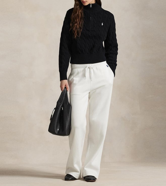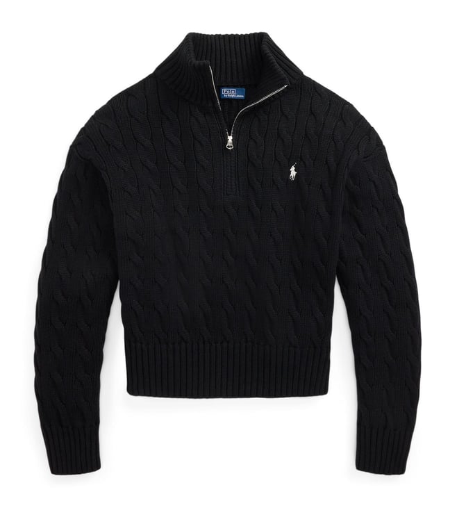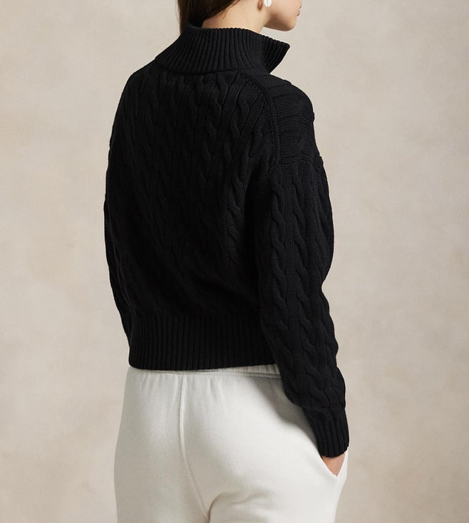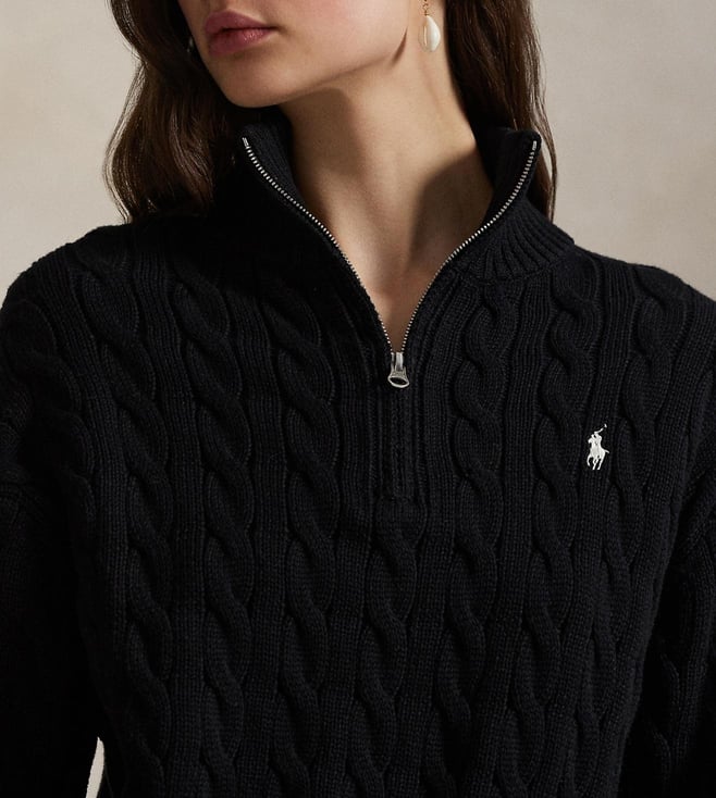 Polo Ralph Lauren Black Cable-Knit Cotton Quarter-Zip Sweater