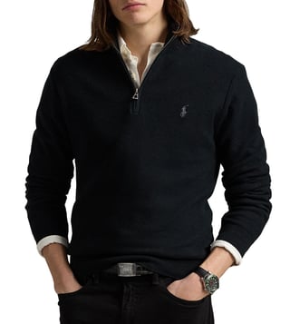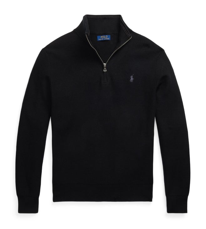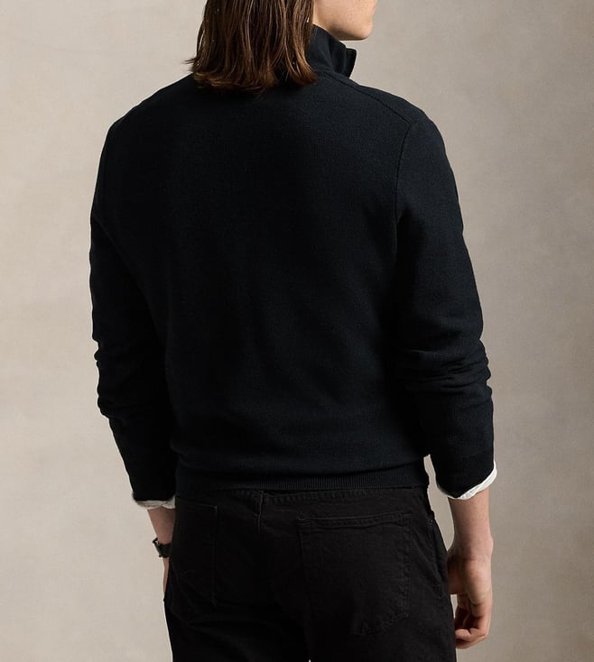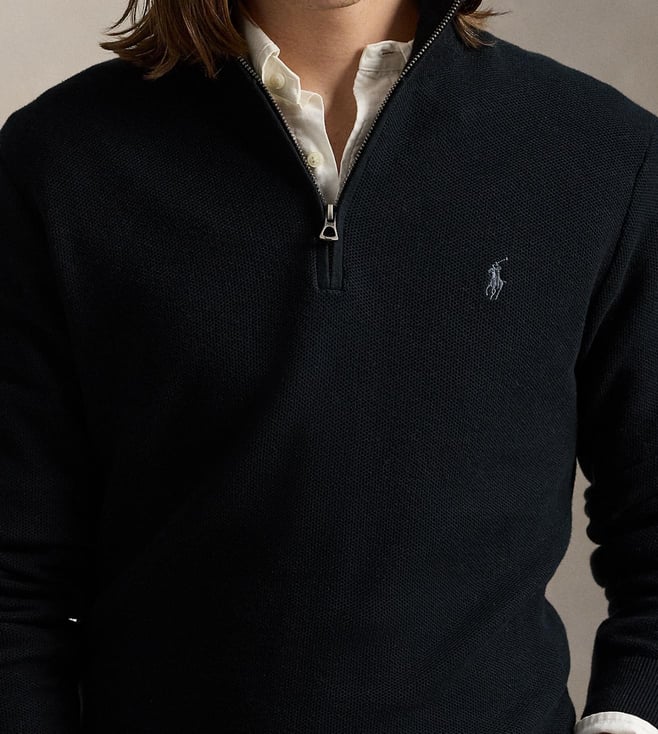 Polo Ralph Lauren Black Mesh-Knit Cotton Quarter-Zip Sweater