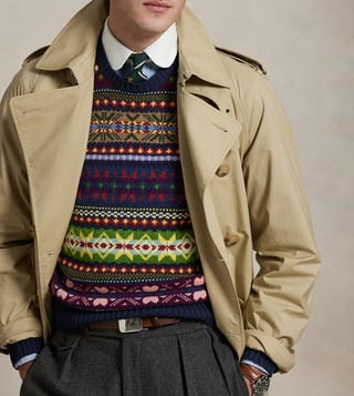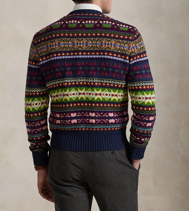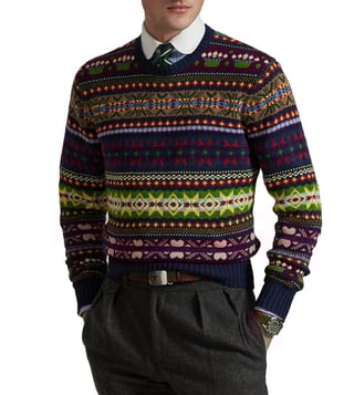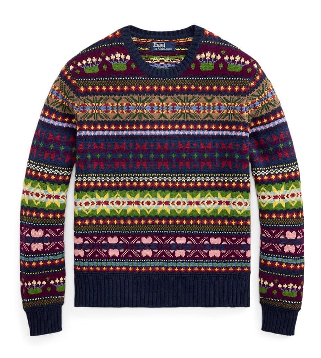 Dive into timeless elegance with the Polo Ralph Lauren Blue Fair Isle Cotton-Blend Sweater. This exquisite piece showcases a captivating Fair Isle pattern, weaving together tradition and modernity. Crafted from a luxurious cotton-blend fabric, it offers unparalleled comfort and warmth. The sweater's classic pullover design ensures effortless style, making it a versatile addition to any wardrobe. Perfectly tailored for all genders, it embodies sophistication and charm in every stitch.