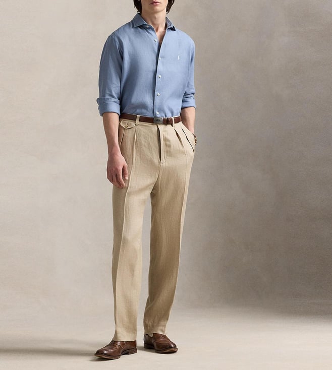 Experience timeless elegance with our men's blue shirt, crafted from 100% linen for ultimate comfort and breathability. This regular fit masterpiece features a solid pattern that exudes sophistication, making it a versatile addition to any wardrobe. The classic shirt collar and long sleeves offer a polished look, perfect for both casual outings and formal occasions. Embrace the perfect blend of style and functionality with this essential piece, designed to keep you cool and effortlessly stylish all day long.